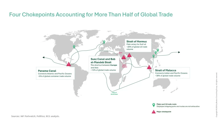 “These geopolitical risks could turn into a physical impossibility of moving goods to certain destinations. In the short term it will extend lead times on goods. In the longer term, it is likely to make firms seek shorter supply chains because of the risk and higher capital costs associated with maritime transport,” says Michael McAdoo, a BCG partner and director, and one of the authors of BCG’s Future of Trade report.