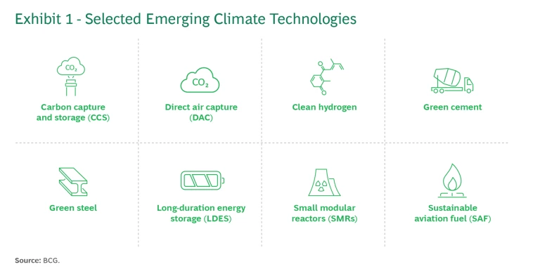 The worldwide effort to advance and commercialize emerging climate technologies faces new headwinds. The immense enthusiasm that once surrounded these technologies has diminished, and green premiums remain stubbornly high. (See Exhibit 1.)