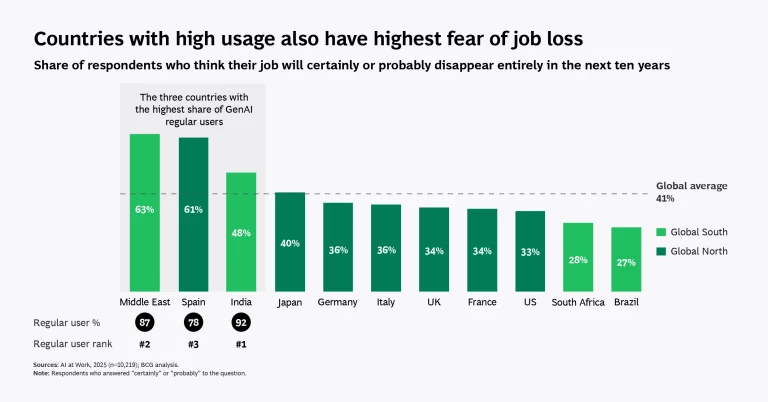 The survey reveals progress by companies in introducing and integrating AI. But it also exposes concerns, primarily about job security. As with last year, the survey reveals that the more employees use AI, the more their concerns grow. This represents a familiar challenge seen in other technological transitions—notably, from steam to electrical power.