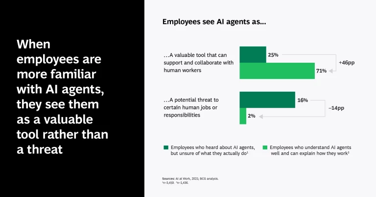 Interestingly, when workers are well-informed and familiar with AI agents, apprehension turns into enthusiasm. Employees begin viewing AI agents less as threats and more as collaborative partners that enhance their work.