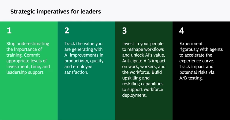 - Experiment rigorously with agents to accelerate the experience curve. Track impact and potential risks via A/B testing.