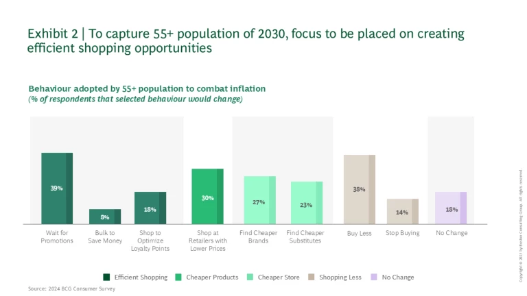 - Price perception is paramount: Like younger consumers, price perception is the top purchasing criteria for older shoppers. However, how they think about and respond to pricing can be very different. Boomers are far less likely to factor the value of loyalty programs or bulk discounts into their price perception. Instead, they are patient consumers with over 40% opportunistically waiting for promotions. While online savviness continues to grow, Boomers are still far more likely to shop brick and mortar for their everyday items and building trust requires sharp everyday pricing on key value indicator products compared to local competitors.