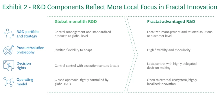 - A full, fractal-advantaged R&D model is relevant for truly global businesses with a solution-oriented mindset that are aiming to solve market-specific customer needs.