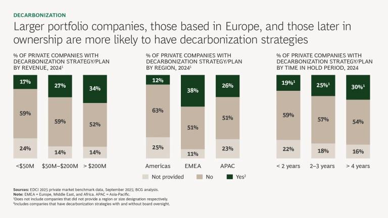 Clearly, the private markets can create value through sustainability. But it takes hard work on the part of both the general partners and the management teams at the companies they own. Together, they must continue to identify and prioritize opportunities that offer high returns, embed initiatives into broader value creation plans, clearly track the impact on financial performance, and share lessons learned across the portfolio. (See “Methodology.”)