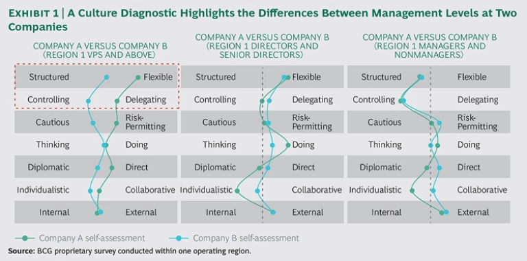 - Company trumps country. Culture is more a function of company than of country. In 80% of the deals examined, we found marked differences between a company’s divisions within the same country.