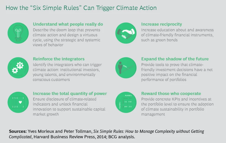 We used this approach, which BCG calls Smart Simplicity, to explore the actions that could help address the complex problem of climate inaction. Smart Simplicity is based on insights from multiple disciplines, such as economics, organizational sociology, and game theory, and is governed by two principles: