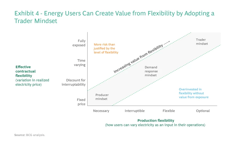 - What is the value of the trader mindset for my operations in my market? Companies should quantify the potential future value of flexibility by modeling different scenarios for market variability, physical flexibility, and the cost of different technological solutions. This will help them decide how much to invest in the journey and what types of actions will be most valuable.