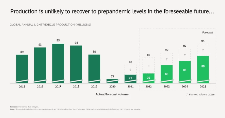 This article and slideshow have been published with a companion piece that examines the outlook for automotive semiconductors; crucially, our study disaggregates the market by chip type and manufacturing technology and offers steps for managing risks and securing supplies. To learn more, click here.